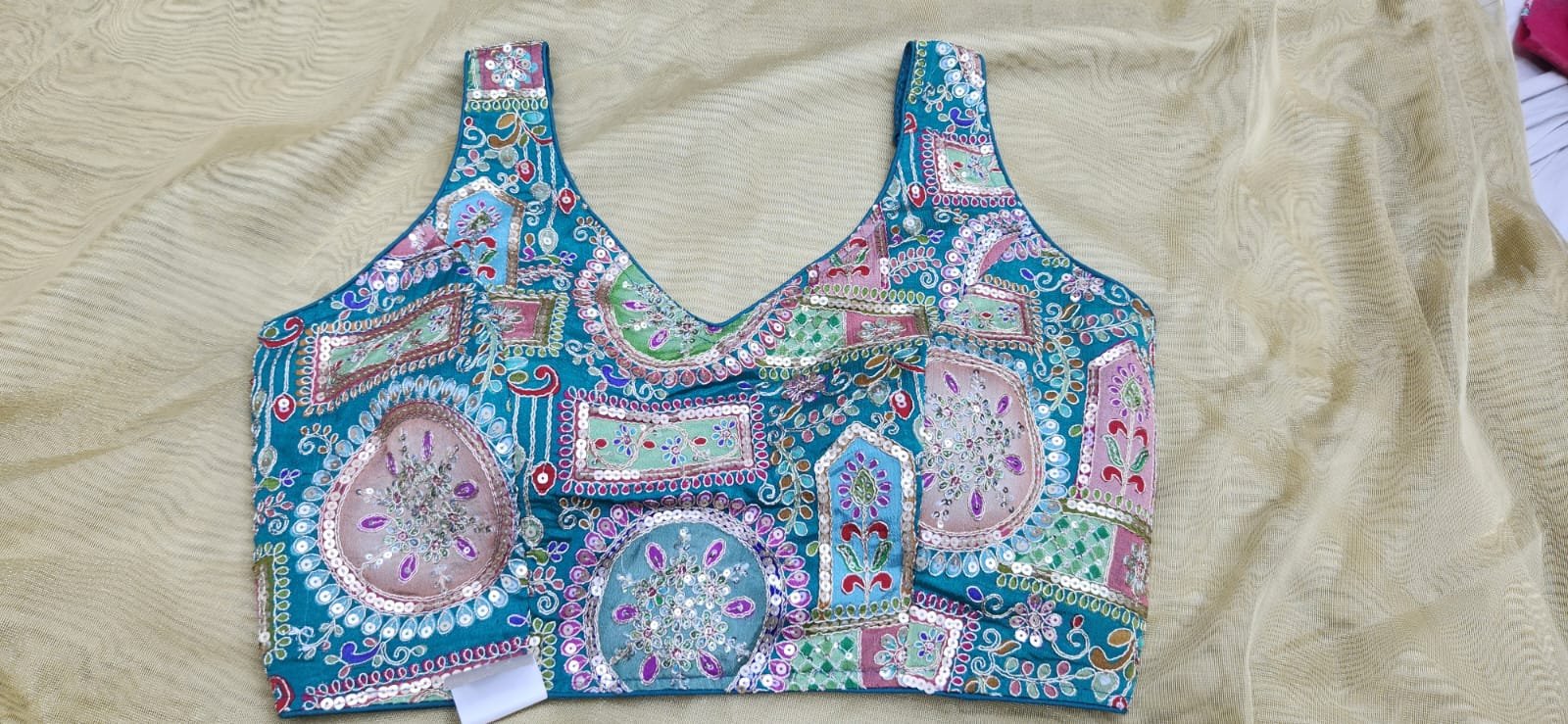 Extra margins are provided to increase or decrease the size of the blouse. Sleeves fabric is provided inside the blouse. Cotton fabric is used as lining. With high quality finishing.